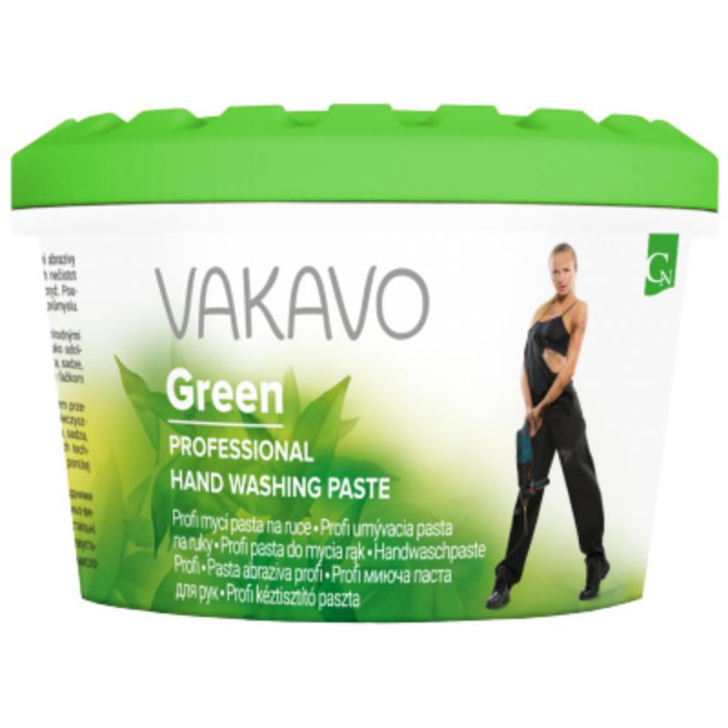 Vakavo Green profi je profesionálna umývacia pasta určená na odstránenie stredne až vysoko odolných nečistôt, ako sú oleje, tuky, maziva, asfalt, nafta, sadze. Použiteľný najmä v autoservisoch, technických službách a ťažkom priemysle.. Abrazívnou zložkou je zmes anorganických a organických materiálov – obsahuje veľmi jemný prírodný abrazív (mletý vápenec). Prednosťou je schopnosť rýchle a veľmi šetrne odstrániť nečistoty z rúk. Dá sa použiť aj ako telový peeling.