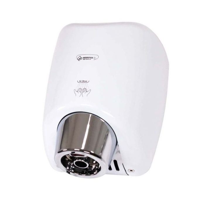 Osoušeč rukou BOOSTER se od jiných osoušečů vyznačuje výraznou pochromovanou tryskou kruhového tvaru. Díky silnému 550 W motoru je vysušení rukou velmi rychlé.