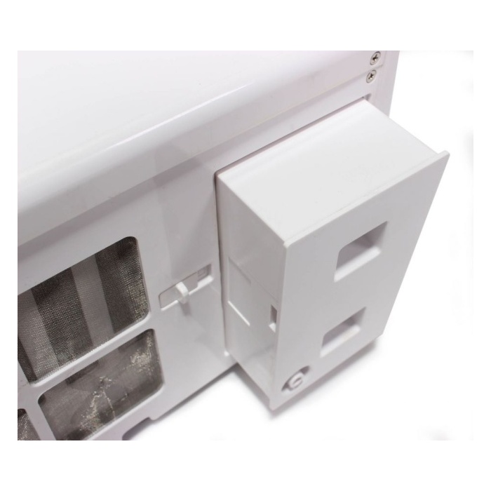 Sušící zóna je osvětlena pomocí 4 modrých LED diod. V přední straně vysoušeče se nachází led dioda skrytá