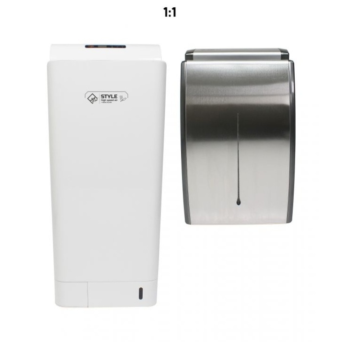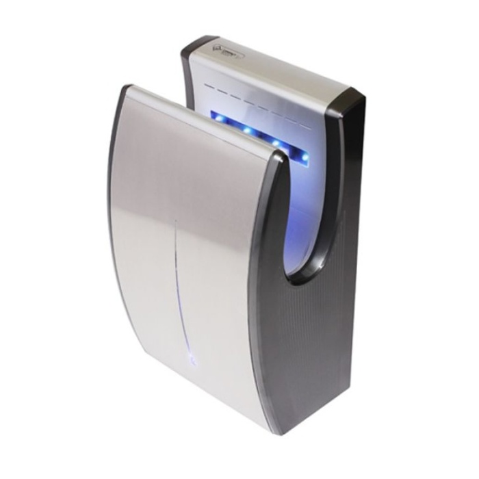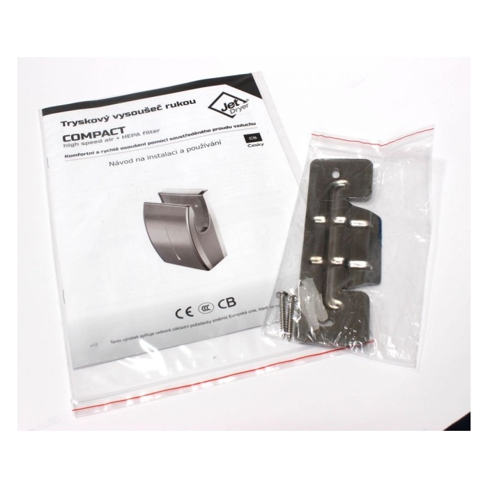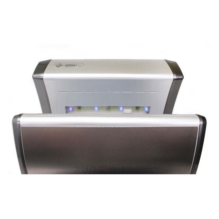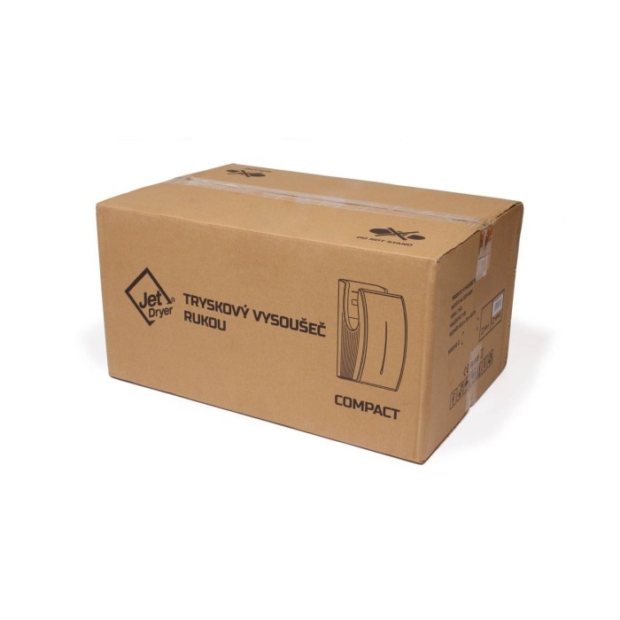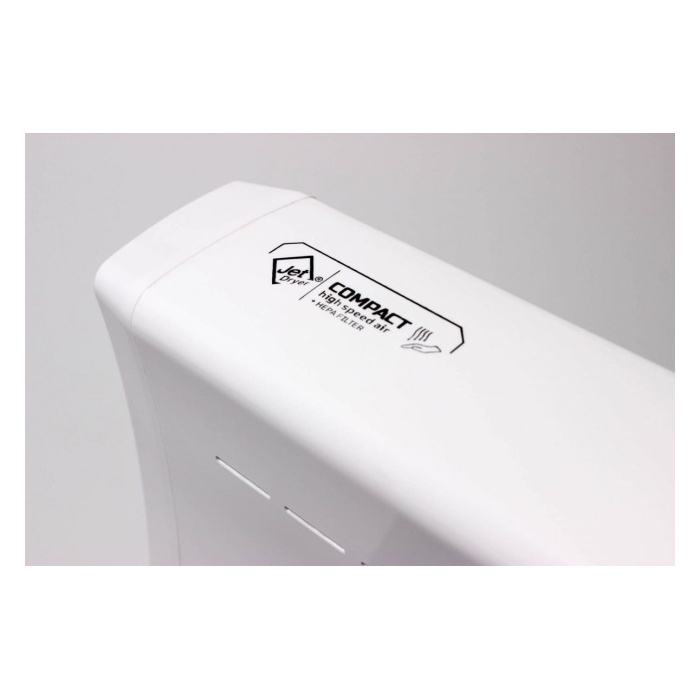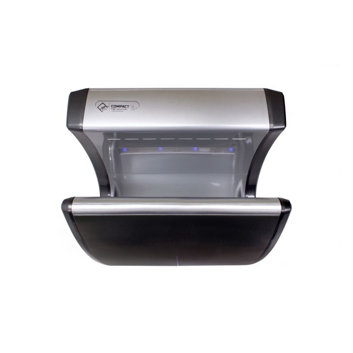 Jet Dryer COMPACT je malý tryskový vysoušeč vhodný především do umýváren limitovaných prostorem. Ve stříbrném provedení je přední panel vysoušeče z kovu, což zvyšuje jeho odolnost ve frekventovaných provozech. Vysoušeč rukou COMPACT je vybaven HEPA filtrem. Voda, která se při vysoušení neodpaří, je zachytávána v odkapové nádobce.
