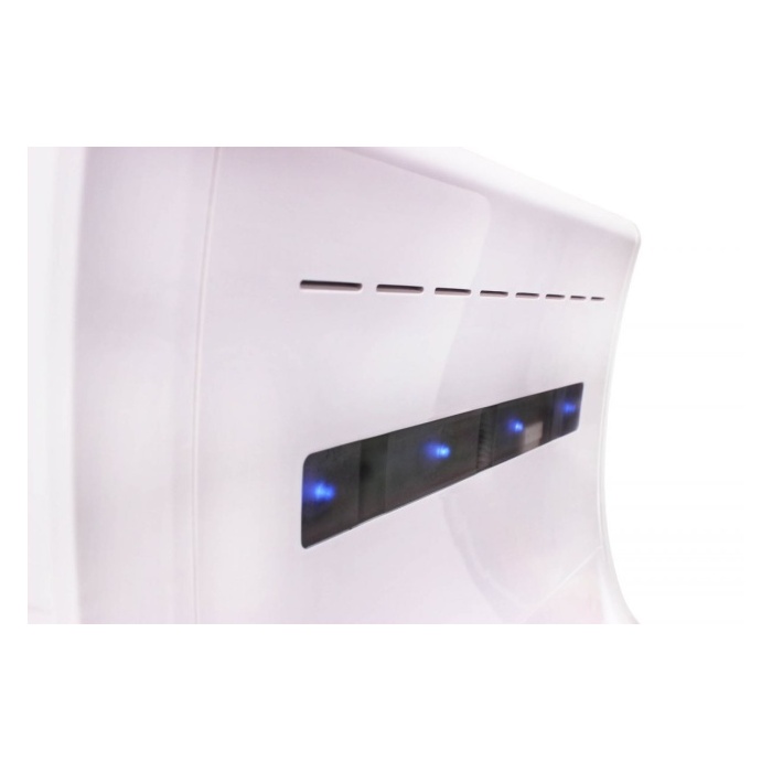Sušící zóna je osvětlena pomocí 4 modrých LED diod. V přední straně vysoušeče se nachází led dioda skrytá