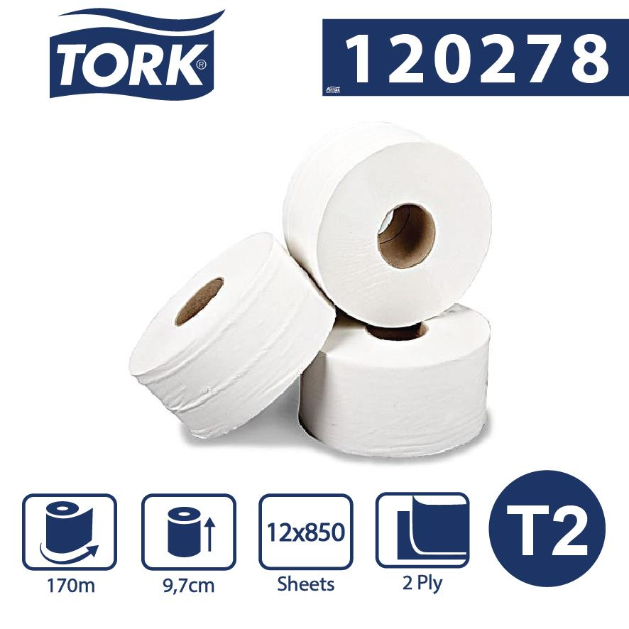 Tork Mini Jumbo toaletný papier v kotúči, Advanced, biely, 2 vrstvy, dĺžka 170m, 12 ks v kartóne