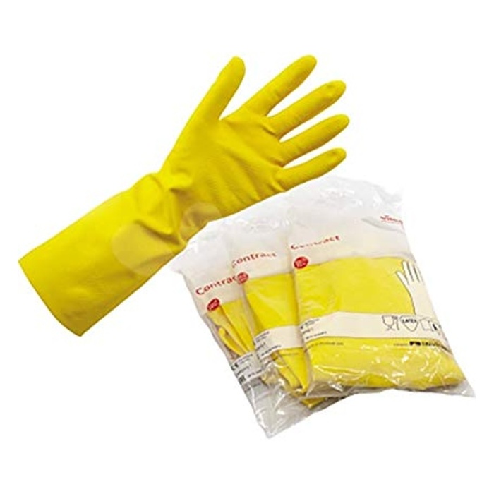 Vileda Profi žlté rukavice pre upratovanie a práce v domácnosti . Predĺžené extra pevné ! Prírodná guma, vnútro jemne flokované, chráni pokožku pred stykom s gumou.