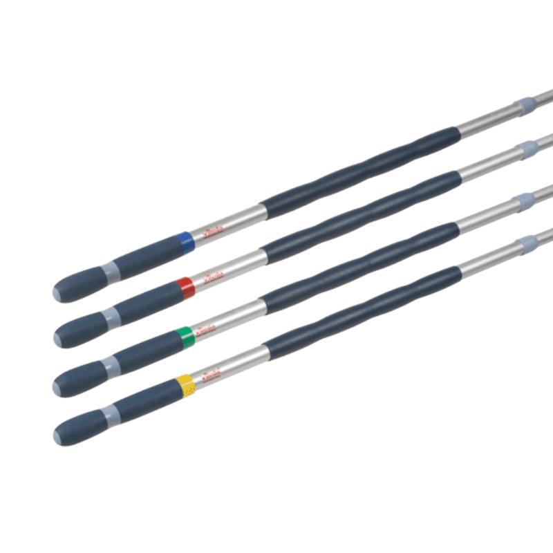 Teleskopické násady sú vyrobené z odolnej vysoko kvalitnej hliníkovej zliatiny a môžu byť nastavené od 100 do 180 cm, aby vyhovovali každej postave. Násady majú protišmykovú hornú rukoväť, ktorá znižuje šmýkanie a únavu ruky.Násady môžu byť farebne kódované podľa HACCP pomôcou farebných krúžkov, ktoré sú súčasťou balenia..